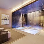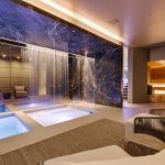 With 6 bedrooms, 9 bathrooms and 8,801 square feet of living space, this home is the epitome of contemporary elegance. As you step inside, you’ll be greeted by a 75-foot long suspended glass bottom pool, offering a unique and tranquil swimming experience while taking in the stunning mountain views. Adjacent to the pool is a rejuvenating spa with a waterfall, providing the perfect spot to unwind after a day of skiing.